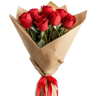 Упакованный в стильную крафтовую бумагу, этот букет сочетает в себе элегантность и простоту, придавая ему особый шарм. Натуральные оттенки упаковки подчеркивают яркость красных лепестков, создавая гармоничное сочетание, которое привлечет внимание и станет прекрасным акцентом в любом интерьере.